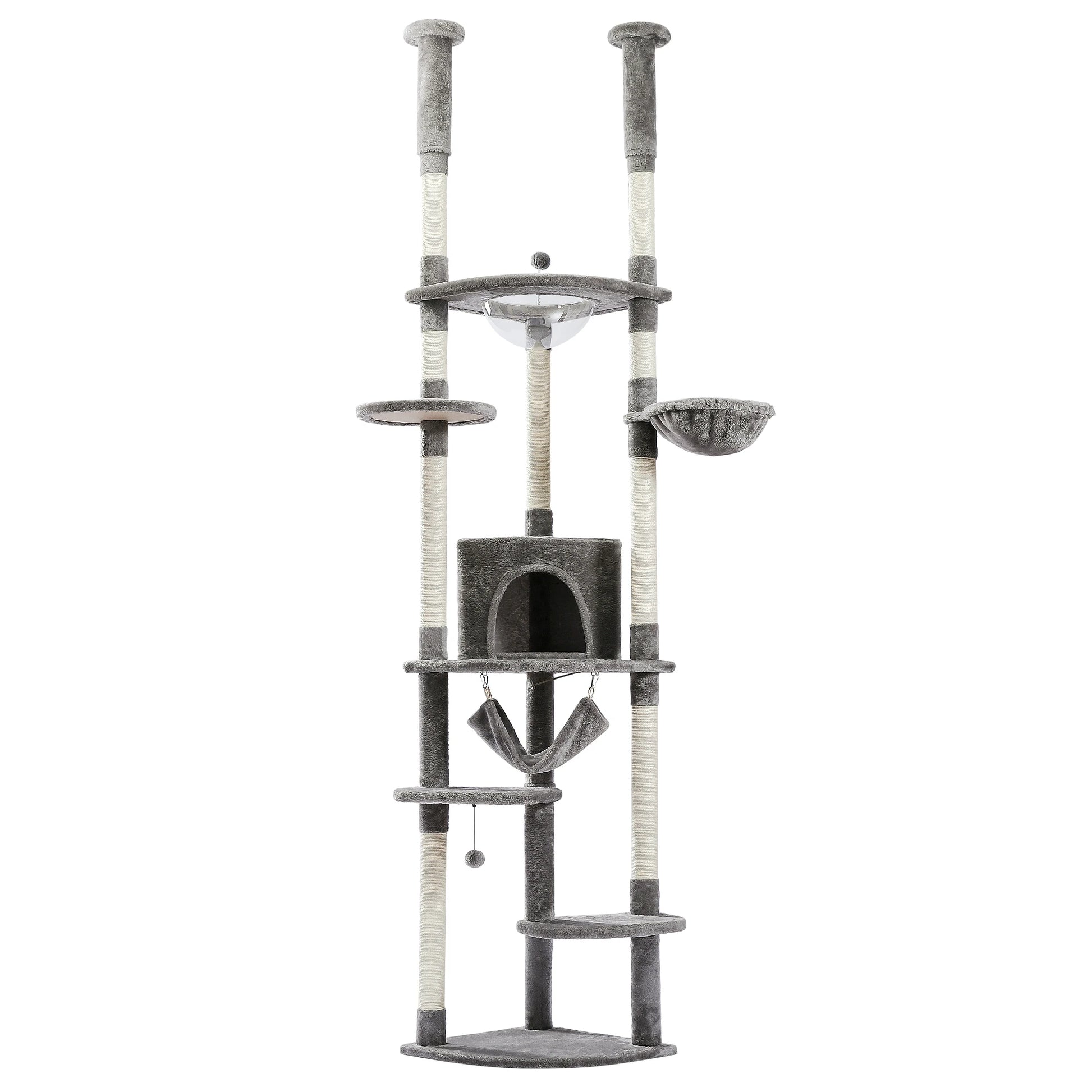 Floor to Ceiling Cat Tree Play House with Scratching Posts, Cozy Condo, Perches, Hammock