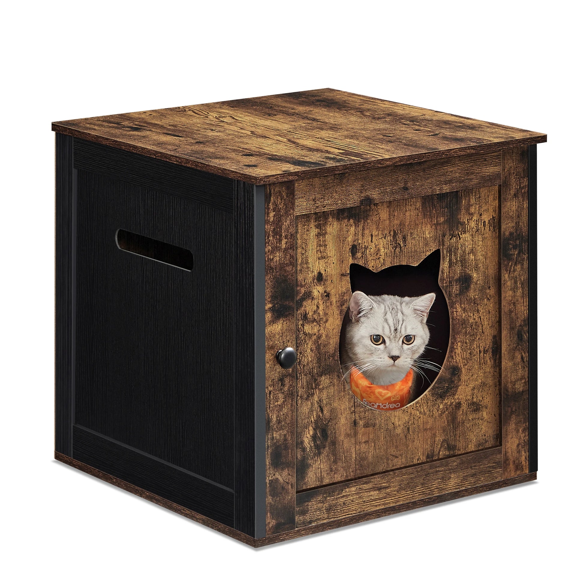 Style Meets Utility: No boring pieces here. While the veneered particleboard offers a strong structure and easy-to-clean surface, the rustic brown finish and cute cat door lend a dash of charm, turning your once-unpleasant spot into a statement-making one