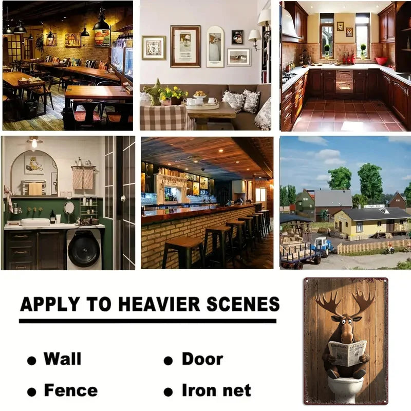 Rustic Moose Metal Tin Sign, Wall Art, 7.87x11.81 inch, for Pub, Kitchen, Home & Outdoor Decor
