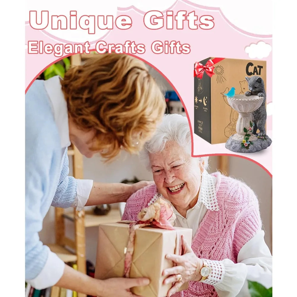 Solar Cat Bird Bath: Outdoor Sculptures for Garden - Unique Gifts - NEW