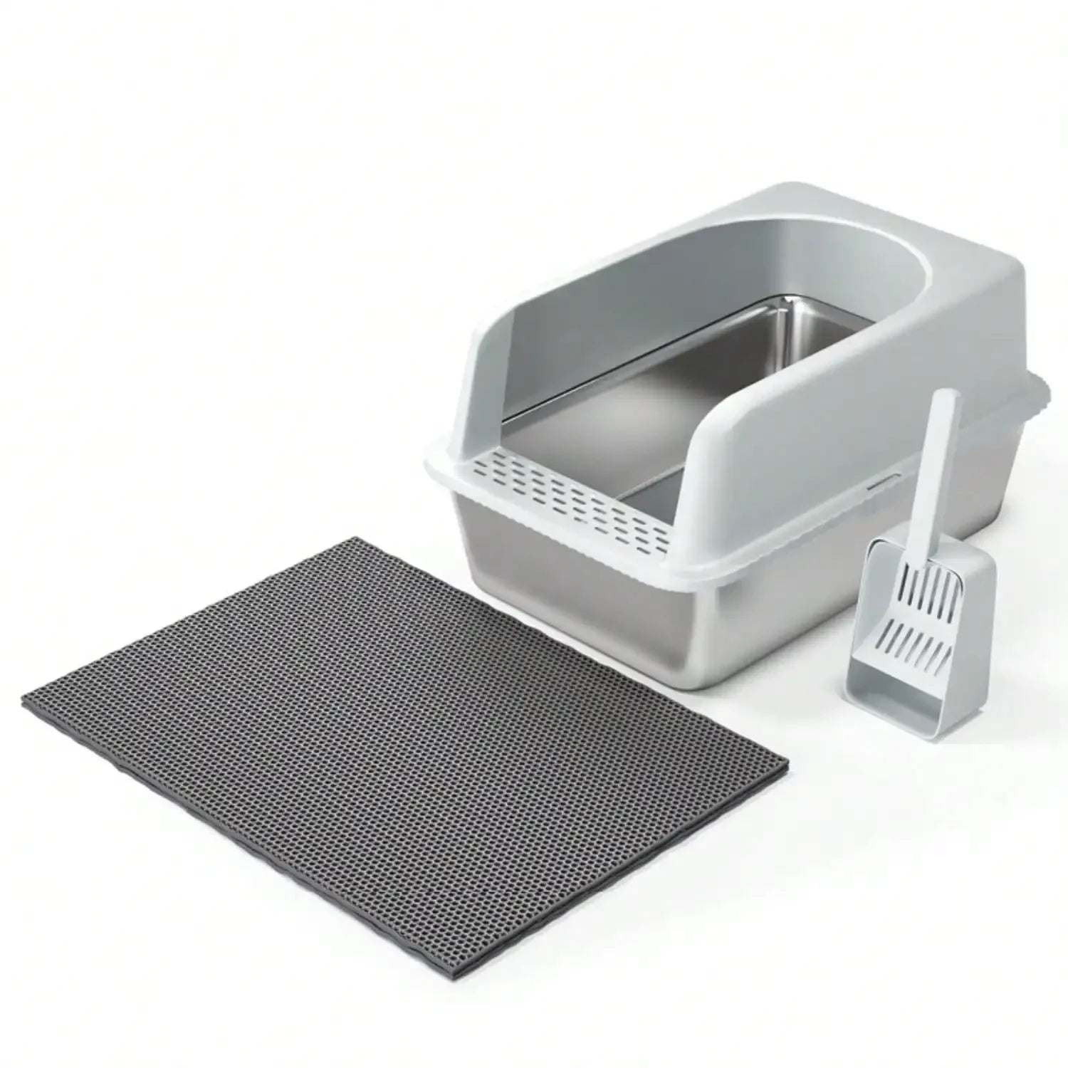 Stainless Litter Box With Scoop, High Sides , Easy Cleaning